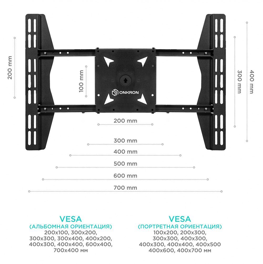 - VESA: 200х200, 200х300, 300х200, 300х300, 300х400, 400х200, 400х300, 400х400, 400x600 мм