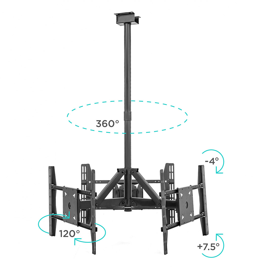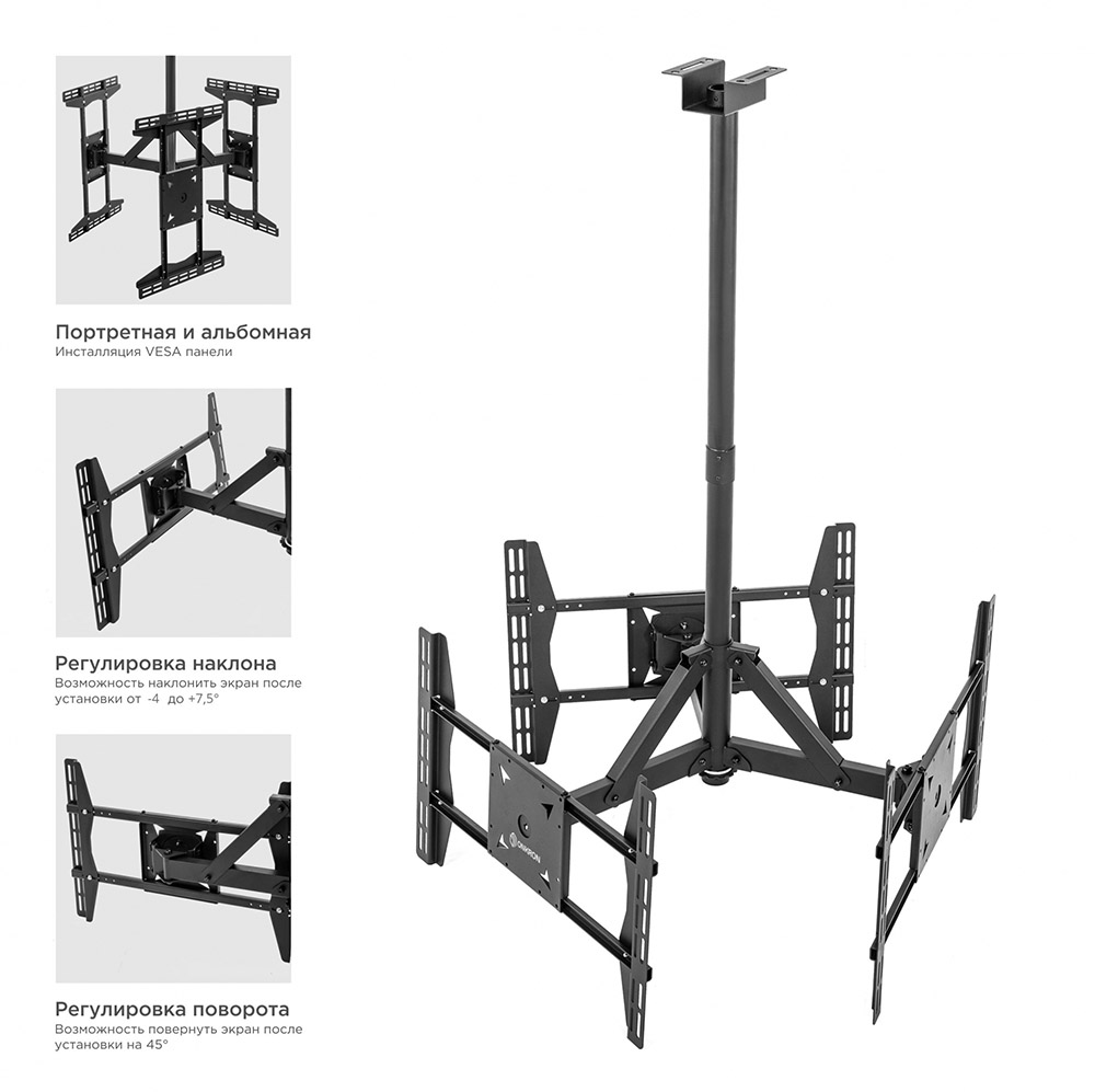 Потолочный кронштейн для 3 дисплеев 32”- 63", чёрный