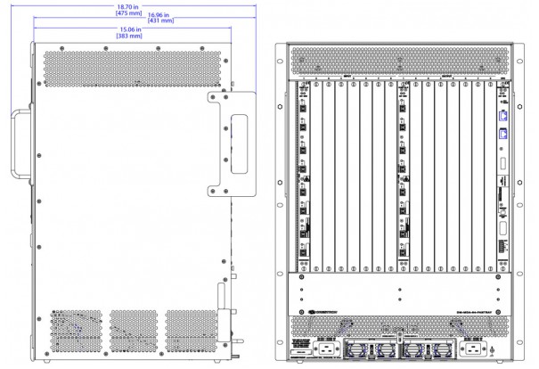 - Крепится в 19-дюймовую стойку , занимает место 14 модулей