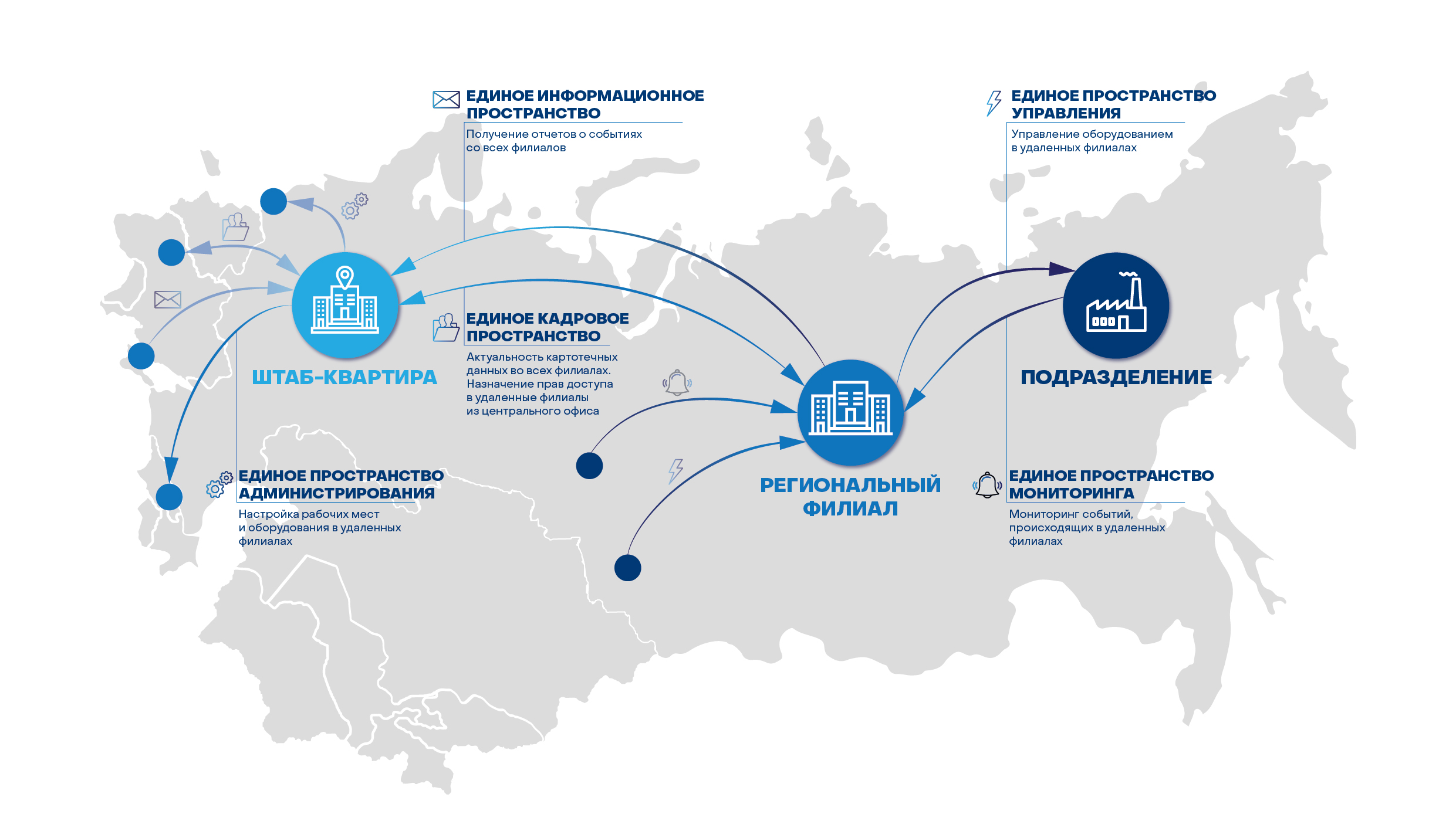 Одна из особенностей LyriX – эффективный функционал филиальности. LyriX позволяет построить единую централизованную систему безопасности на распределенном объекте с филиалами в различных городах – даже удаленных друг от друга на сотни километров. Такая система будет обладать общей базой данных и синхронизироваться по всем филиалам в режиме реального времени. Доступно также удаленное управление и мониторинг оборудования, сводные отчеты по всем филиалам, централизованное управление правами доступа.