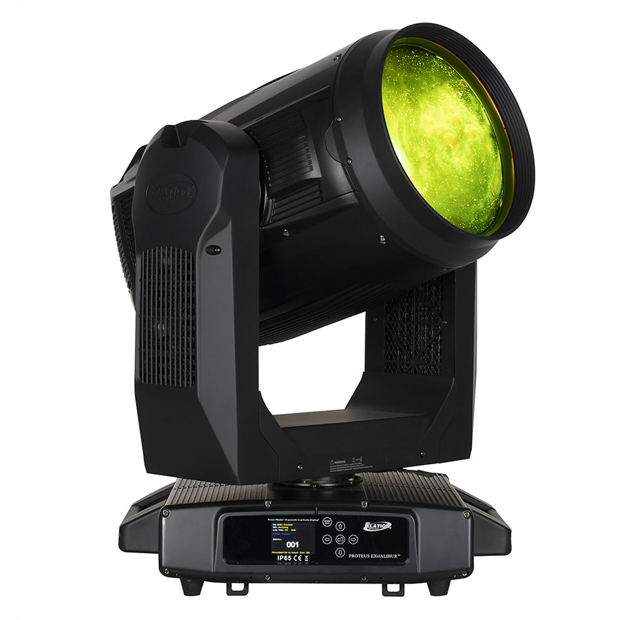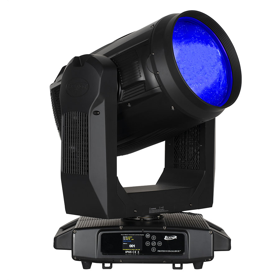 Elation PROTEUS EXCALIBUR – автоматический световой прибор полного вращения серии Proteus с классом защиты IP65, обладает невероятной светоотдачей при удивительно компактном корпусе. Чрезвычайно узкий луч 0,8° и сверхширокая 260-миллиметровой передняя линза формирую мощный световой поток, видимый на большом расстоянии. Дистанционно управляемая линза Expander расширяет луч до 3,5 градусов. Фильтр Frost позволяет смягчить луч при необходимости.