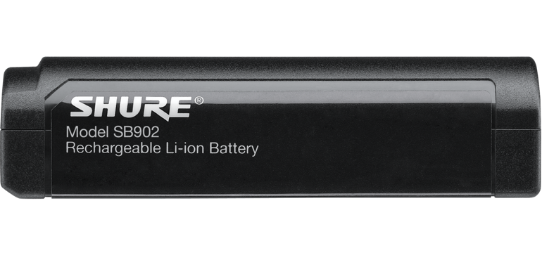 Shure SB902 — это перезаряжаемая литиево-ионная батарейка, совместимая с ручными передатчиками Shure линеек GLX-D и MXW.