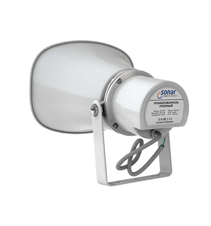 Sonar SHS-30T - Громкоговоритель рупорный трансляционный, 100 В, 30/15 Вт, 400 Hz-6 kНz, чувствительность 104 дБ, звуковое давление 119 дБ, 285*206*288мм, 1.8кг, ABS-пластик